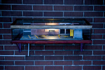 The work focuses self-referentially on the location of an exhibition showcase, which is operated as an independent art space in Lucerne, in the form of a model on an exactly reduced scale. Day and night, the vitrine box in the model also shines signaling and drawing attention to itself with Morse messages – «here», «beep», «hello world».